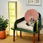 | Porta-talheres de latas decoradas com tecido ou papel adesivo. |